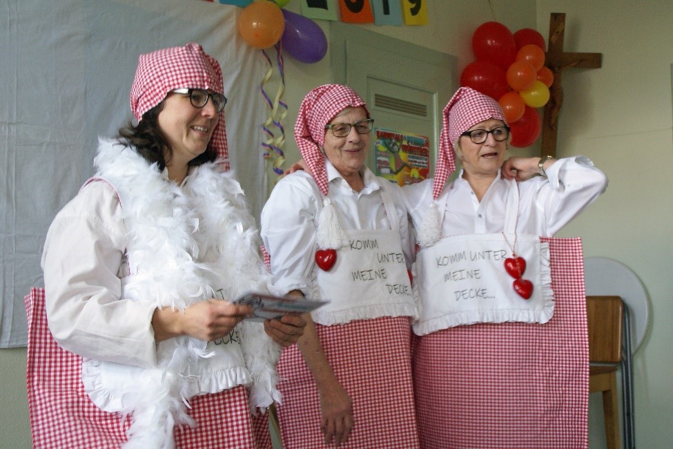 Wir Mädels vom FCB sorgen für den lustigen Rahmen unseres kfd-Karnevals. In der Regel treffen wir uns ab November, überlegen uns gemeinsam ein Motto für den nächsten Karneval und „stricken“ daraus ein buntes Programm, sei es in Form von Gesang, kleinen Sketchen oder Mitmachspielen. Der Fantasie sind hier keine Grenzen gesetzt!