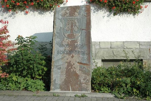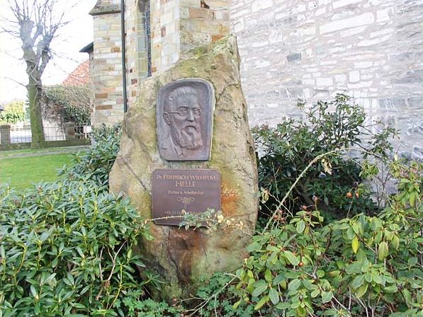 Gedenken an den in Bökenförde geborenen Dichter Dr. Friedrich Wilhelm Helle. Der Stein befindet sich auf dem Kirchengelände.